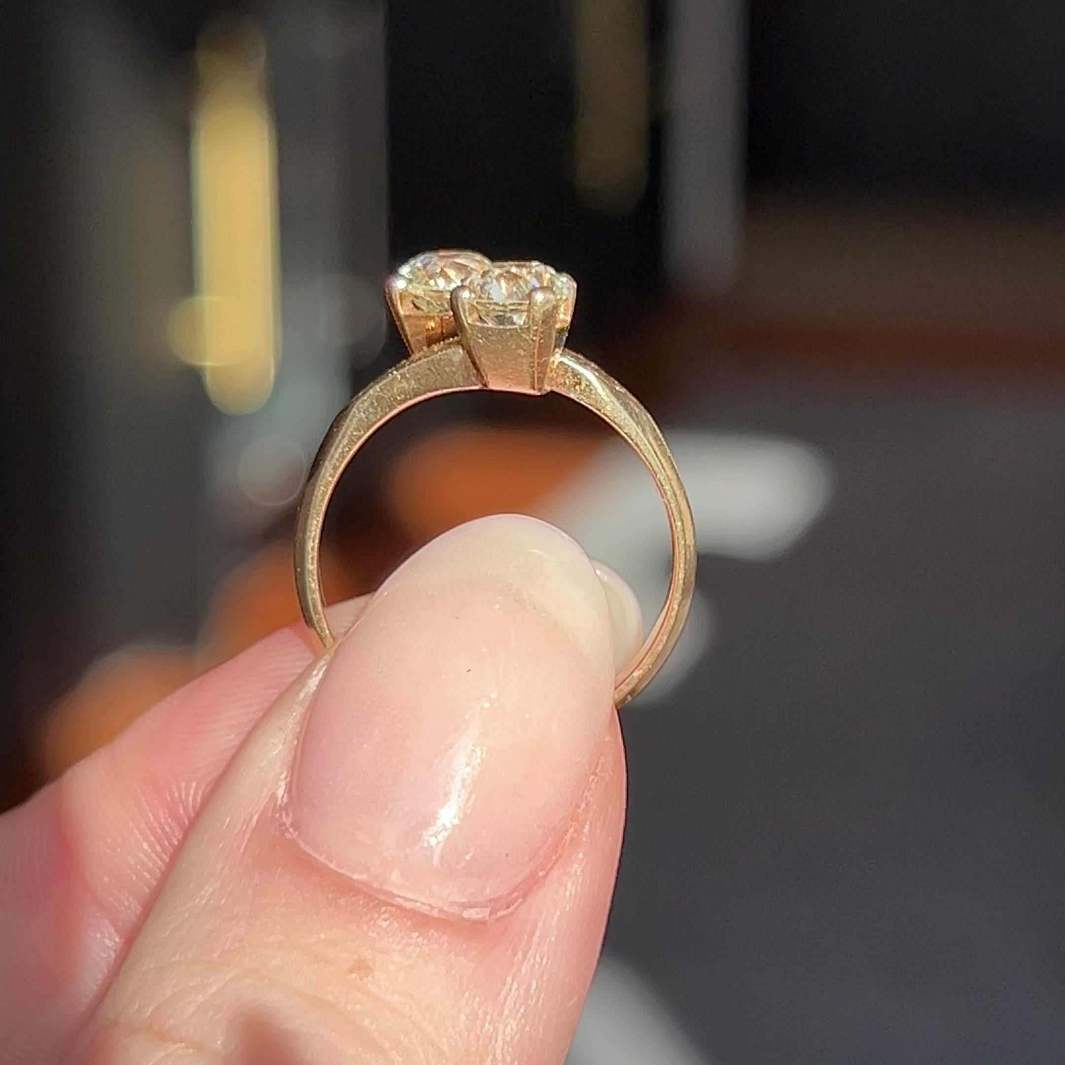 Antique 14kt Yellow Gold Diamond Toi et Moi Ring
