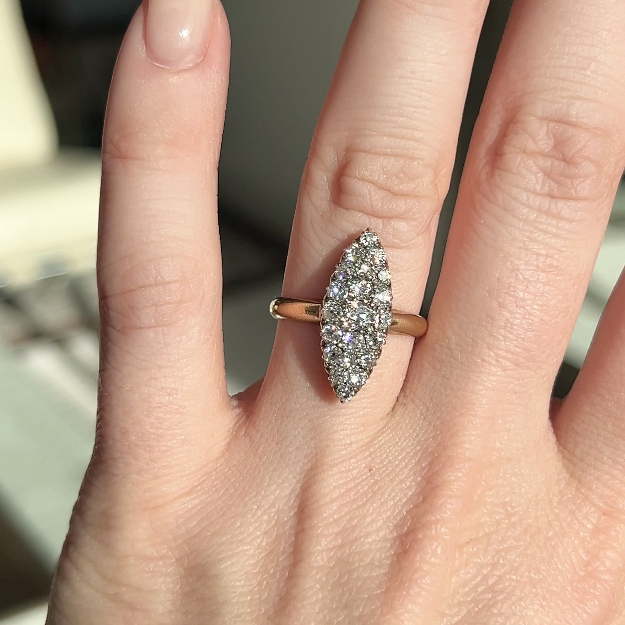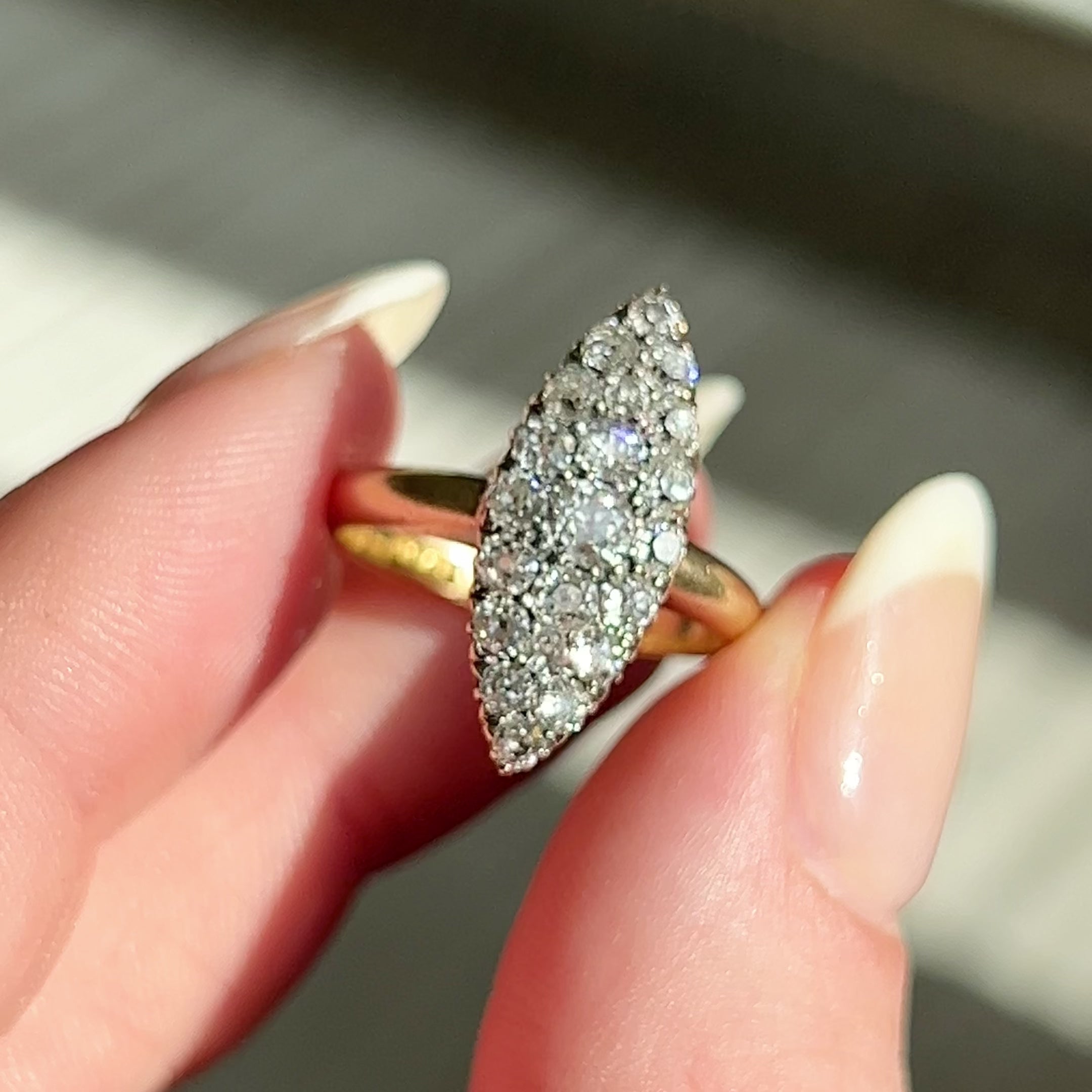 Antique 18kt Yellow Gold Diamond Navette Ring